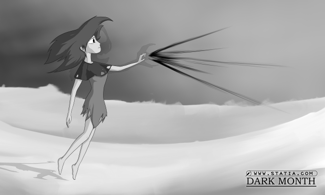 Only their subterranean guide dared face them. Her slender form moved across the snow without leaving a mark, her tattered clothes flapping furiously in the wind. This was the first time any of them had really had a chance to see her clearly, for the caves had been dark, lit only with bizarre lights. Here she was before them, demonstrating her own power, not that of the underground. It was a different power than any of them knew.