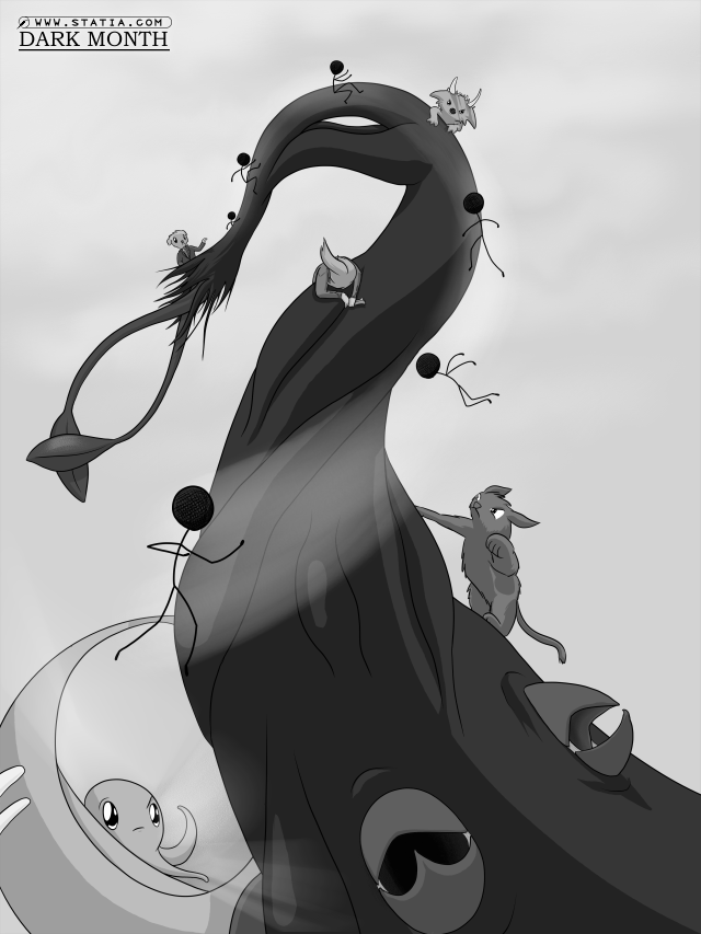 Stickman spun about on a long tendril, clutching it like a panicked spider. "It doesn't respond to that sort of encouragement, sir! Try stabbing!"